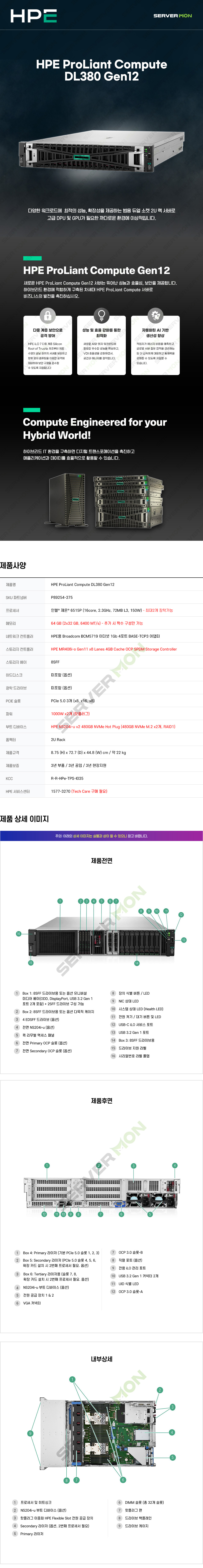 HPE DL380 Gen12 (6515P 16C 2.3GHz 1P / 32GB *2 / 8SFF / MR408i-o / NS204i-u / 1000W *2) P89254-375