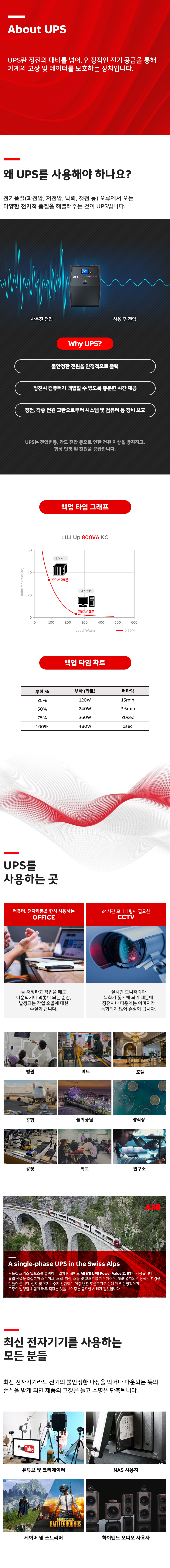 UPS / 800VA / 480W / 230VAC / USB / LCD디스플레이 / HID기능 / 122x160x315mm / 4.7kg / 보증기간 2년(Rack kit, EBM case, 배터리 1년)